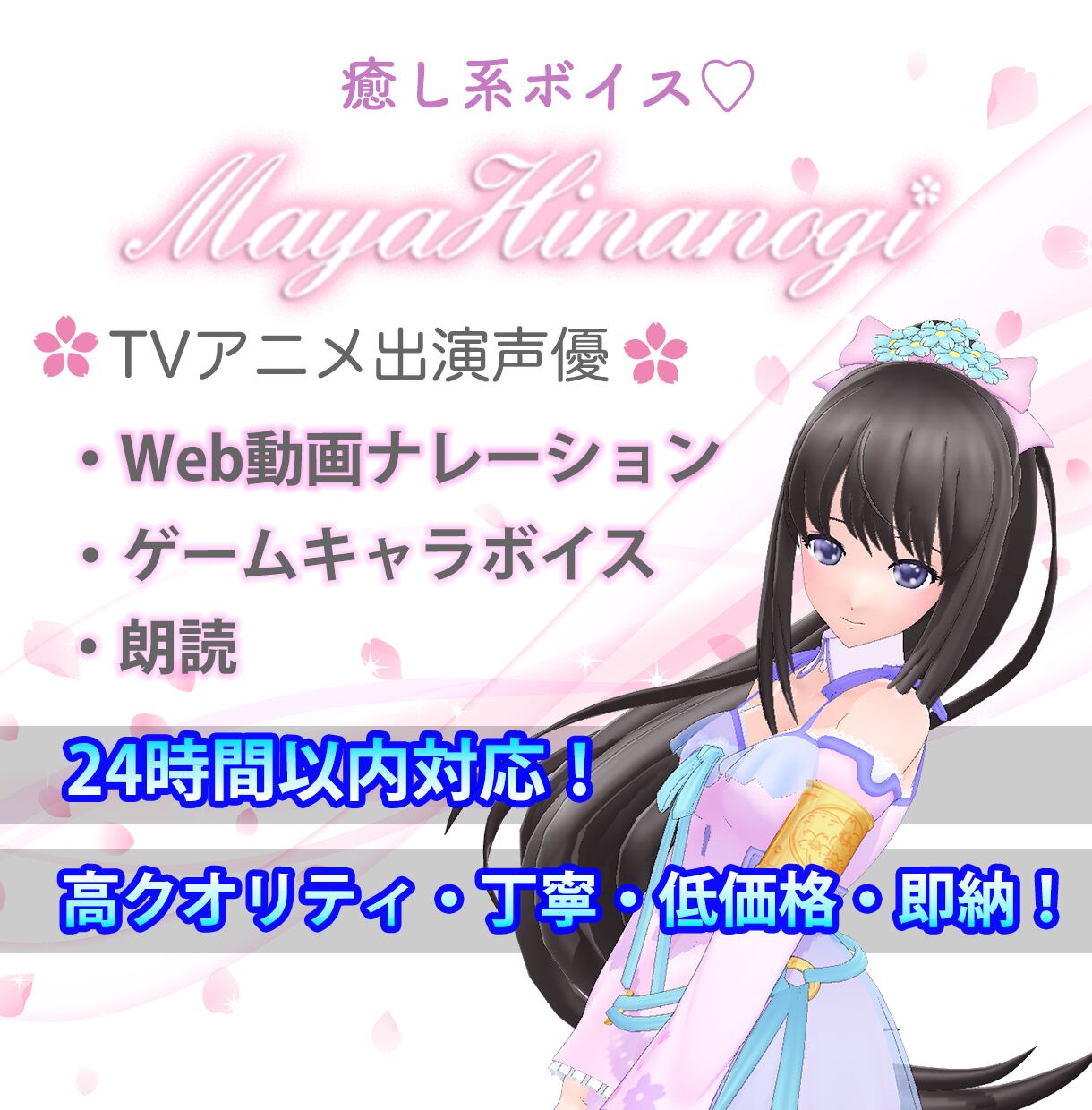 リピート率80%以上の雛乃木まやがプロフェッショナルな声をお届けいたします。